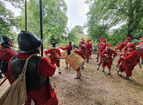 With the air thick with smoke and the smell of gunpowder, the drummers quicken their rolling beat, the pike divisions charge at each other, re-enacting the intense push-and-thrust of 17th-century combat.